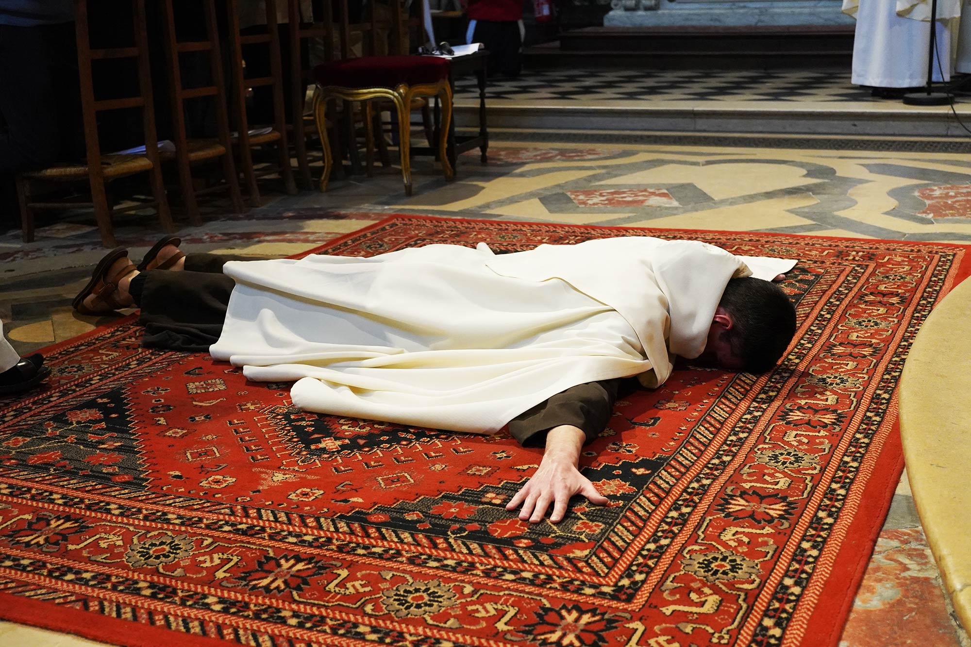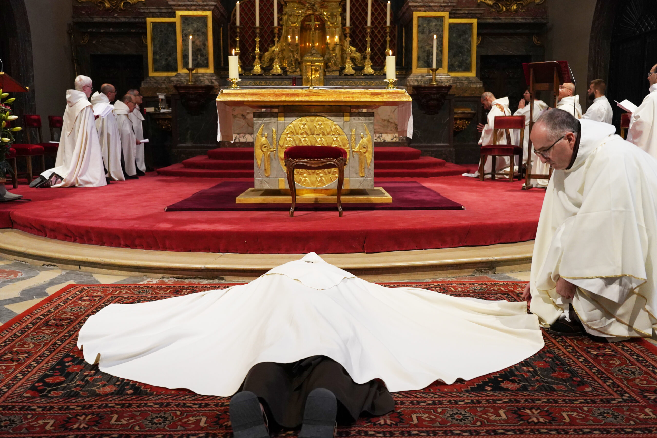 « Ainsi parle le Seigneur : Mon épouse infidèle, je vais l’entraîner jusqu’au désert ». C’est la parole que Dieu adresse au peuple d’Israël qui s’est détourné du vrai Dieu pour adorer des idoles. Mais le Seigneur ne se laisse pas vaincre en espérance. Il prend les moyens de ramener son peuple à lui, à la manière d’un époux cherchant à faire revenir sa femme adultère au temps et au lieu du premier amour, au désert de l’exode. C’est en effet pendant les 40 ans de désert que le peuple juif a retrouvé le sens de l’alliance. Cette image conjugale s’applique à tout disciple de Jésus, homme ou femme. Mais au Carmel, elle reçoit un relief particulier car le Carmel est un désert, un lieu saint et retiré qui permet de retrouver le cœur, son propre cœur mais aussi celui du Bien-Aimé. « Mon épouse infidèle, je vais l’entraîner jusqu’au désert, et je lui parlerai cœur à cœur. » S’engager pour toujours dans la grâce du Carmel, c’est choisir le désert comme demeure. Voilà ce que comprit la jeune Thérèse Martin en méditant sur sa vocation : « je sentis que le Carmel était le désert où le Bon Dieu voulait que j’aille me cacher… » (Ms A 26) écrit-elle. Le désert est un lieu qui fascine et qui fait trembler tout à la fois : espace immense de solitude et de dépouillement, avec la terre et le ciel. Mais l’expérience t’a montré, cher frère, que le désert du Carmel est habité d’une présence, celle du Dieu caché. A la suite des Pères du désert, tu as découvert au noviciat, et par la suite, que le désert est un état d’esprit, une manière de vivre qui permet de se vider de soi-même pour se laisser remplir par la présence aimante de Jésus. C’est dans le désert que chacun est face à sa vérité, face à sa misère implacable et à ses infidélités, mais aussi face à la vérité du Dieu qui nous sauve. Au désert, les belles apparences s’effritent, nos masques tombent et cela a parfois quelque chose d’effrayant ; mais c’est sur ce lieu même qu’apparaît le fondement fiable de toute existence : « ne crains pas, je suis ton Dieu », celui qui te donne « la vie, le mouvement et l’être ». Alors peut se prononcer un « oui », en signe d’alliance, un oui préparé pendant des années par ce cœur à cœur du désert et qui s’exprime aujourd’hui solennellement devant l’Eglise. Ce oui est fondé sur ta foi en la fidélité de Dieu à ton égard hier, aujourd’hui, demain et pour toujours. « Je ferai de toi mon épouse pour toujours » dit le Seigneur. « Je me donne de tout cœur » répondras-tu dans quelques instants dans ton acte de profession. C’est bien cette grâce du désert qui te permet de répondre oui au oui de Dieu, de lui rendre amour pour Amour.