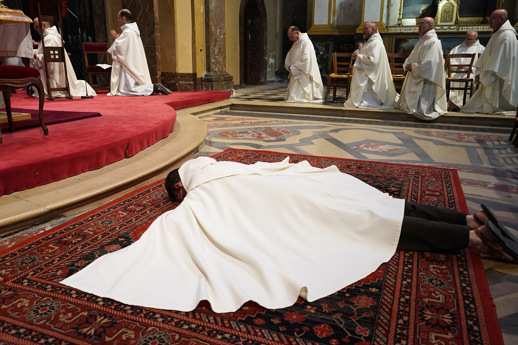 Selon les mots de la Règle, tu as appris à méditer jour et nuit la Loi du Seigneur, à scruter les paroles divines consignées dans les Ecritures. Tu as découvert que ces paroles n’étaient pas des vestiges du passé mais une parole à toi adressée. Une parole qui s’accomplit dans ta vie comme le proclame Jésus dans l’évangile : « Aujourd’hui s’accomplit ce passage de l’Écriture que vous venez d’entendre. » En effet, tu peux affirmer la même chose pour ton propre compte en ce jour où ta consécration baptismale revêt une couleur nouvelle. L’Esprit du Seigneur te donne de répondre à la Parole reçue et méditée : « Me voici, Seigneur, je viens faire ta volonté » avec les mots du psaume ou avec ceux de notre mère sainte Thérèse : « Je suis né pour vous, que voulez-vous faire de moi ? »