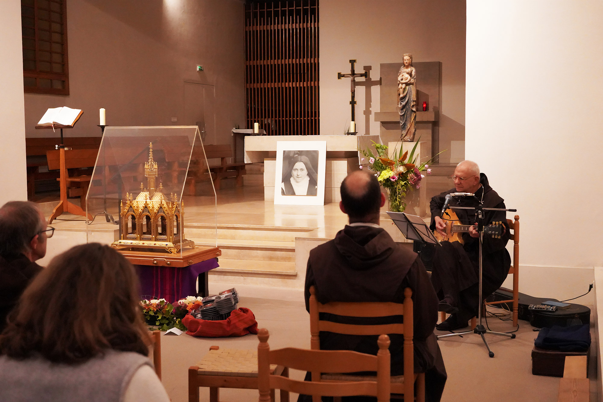 Les 11 et 12 octobre, les reliques ont été accueillies au couvent d’Avon. Les journées ont été rythmées par des conférences sur la vie et la spiritualité de sainte Thérèse, des messes, des temps d’oraison, d’adoration et de confession. Une exposition intitulée Brûlure d’amour ainsi qu’une vente de livres à la librairie du Centre spirituel accompagnaient ces moments.